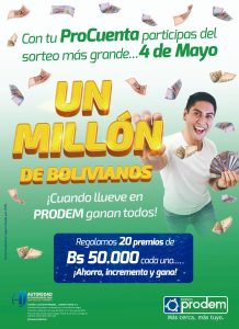 Banco Prodem, llega al último sorteo de la segunda versión de su campaña empresarial, en el que cada quince días sorteaba 20 premios en efectivo entre sus clientes que tienen sus ahorros en su caja de ahorro Pro Cuenta, de esta manera refuerzan la confianza y...