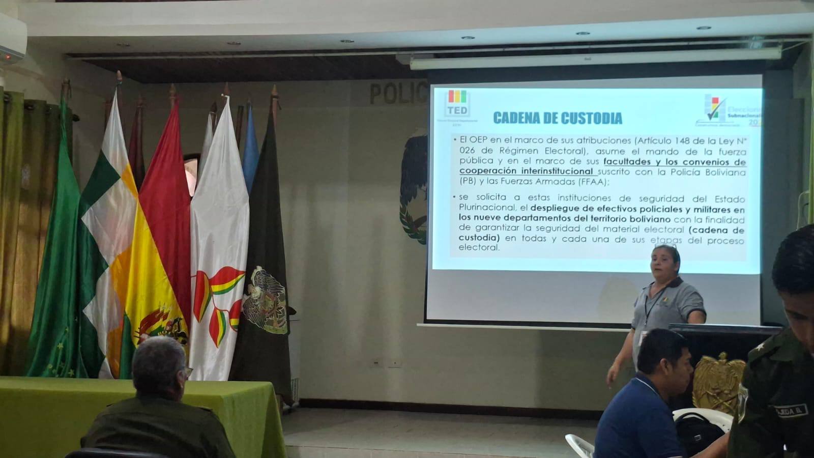 El Tribunal Electoral Departamental del Beni llevó adelante una jornada de formación dirigida a efectivos de la Policía Departamental con el objetivo de consolidar los procedimientos de seguridad vinculados a la cadena de custodia del material electoral para las elecciones subnacionales de 2026.